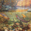 Is it salmon or trout? A fisherman would have no doubt! This is an Autumn Dream Day for any fan of fishing and puzzling. With two beautiful views from above and below the water, are you rooting for the fish or the fisher? A 1000 piece puzzle full of autumn oranges and misty greens. Be sure to catch the tackle box and fishing pole camouflaged in the rocks and trees!