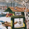 A sumptous holiday meal for all the birds of the forest! Blue Jays, Cardinals, and Chickadees have all gathered at the bird feeder for a feat of seeds and corn. The old family farm is off in the distance, and if you look closely, you can see the ol’ horse-drawn sleigh bringing in the new Christmas tree. You can feel the magic in this 1000 piece puzzle- but maybe that’s just the morning winter chill!