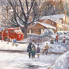The fire department has brought their big red firetruck to spray the hockey ice pond, with the help of town kids, in preparation for the Big Game Tomorrow. A delightful 500 piece puzzle.
