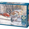 The fire department has brought their big red firetruck to spray the hockey ice pond, with the help of town kids, in preparation for the Big Game Tomorrow. A delightful 500 piece puzzle.