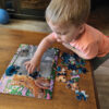 A tray puzzle is made up of a board with a recessed center with a raised edge frame, plus removable puzzle pieces. This allows the durable puzzle pieces to fit into the tray creating one flat surface when completed, just like a regular jigsaw puzzle. When the puzzle pieces are removed from the board, you’ll find a greyed out image as the background. This greyed out image also has definitive lines to give the puzzler two clues: the shape of the puzzle piece and the image printed on it. Originally, our tray puzzles were intended for young children, but we quickly realized that seniors enjoyed these puzzles as well, particularly those living with dementia. This is why our image selection hopefully appeals to both the young and the young at heart. For ages 3+.
