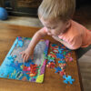 A tray puzzle is made up of a board with a recessed center with a raised edge frame, plus removable puzzle pieces. This allows the durable puzzle pieces to fit into the tray creating one flat surface when completed, just like a regular jigsaw puzzle. When the puzzle pieces are removed from the board, you’ll find a greyed out image as the background. This greyed out image also has definitive lines to give the puzzler two clues: the shape of the puzzle piece and the image printed on it. Originally, our tray puzzles were intended for young children, but we quickly realized that seniors enjoyed these puzzles as well, particularly those living with dementia. This is why our image selection hopefully appeals to both the young and the young at heart. For ages 3+.