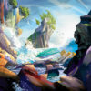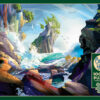Experience the power of the ocean with “Coastal Waves,” a 1000 piece puzzle that captures the abstract beauty of nature. This puzzle by Dale Hitchcox showcases a rocky cliff with rushing waves crashing against its base, set against a backdrop of clear blue skies and graceful birds in flight. In the distance a rock formation juts out of the water with beautiful green trees crowning it. With some dark purple and black areas framing the puzzle, it could be a tricky one to solve for some. The blue and white bring peace to the puzzle, but it may not bring reprieve. An overall challenging puzzle with beautiful results.
