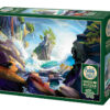 Experience the power of the ocean with “Coastal Waves,” a 1000 piece puzzle that captures the abstract beauty of nature. This puzzle by Dale Hitchcox showcases a rocky cliff with rushing waves crashing against its base, set against a backdrop of clear blue skies and graceful birds in flight. In the distance a rock formation juts out of the water with beautiful green trees crowning it. With some dark purple and black areas framing the puzzle, it could be a tricky one to solve for some. The blue and white bring peace to the puzzle, but it may not bring reprieve. An overall challenging puzzle with beautiful results.