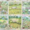 Cottage Gardens 1000 piece puzzle features six whimsical scenes of flower fields, cute camper, a greenhouse, and a lovely little cottage. The scenes are postcards pinned to a wooden board. Would these pretty pastel scenes be on your vision board?