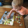 A tray puzzle is made up of a board with a recessed center with a raised edge frame, plus removable puzzle pieces. This allows the durable puzzle pieces to fit into the tray creating one flat surface when completed, just like a regular jigsaw puzzle. When the puzzle pieces are removed from the board, you’ll find a greyed out image as the background. This greyed out image also has definitive lines to give the puzzler two clues: the shape of the puzzle piece and the image printed on it. Originally, our tray puzzles were intended for young children, but we quickly realized that seniors enjoyed these puzzles as well, particularly those living with dementia. This is why our image selection hopefully appeals to both the young and the young at heart. For ages 3+.