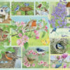 Garden Birds in Spring is one of four 500 piece puzzles in a series. Enjoyable on its own or collect each season and align them two by two to create one full scene that can be enjoyed throughout the year. Jane Shasky’s watercolour painting creates a soft palette evoking an innocence and sweet charm. This season celebrates a Robin by its egg-filled nest, bees, butterflies, and dragonflies flitting about, Blue Jay’s cheerfully chirping, and pretty pink petals adorning the lush green leaves of the trees.