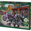 Another biker spots a sweet pair of motorcycles parked on the gravel road. The His & Hers owners have stopped to dine at Rowdy’s Roadhouse for some BBQ and live music. But before they head inside, they spot their friend hanging outside of the Highway Rough Riders store. It’s a nice day to make some small talk before throwing back a pint while listening to some Blues. We call that a good day around here.
