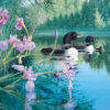 A hidden little cove with beautiful purple flowers and red eyed loons are the reason this pond is known as Iris Cove Loons. Take an adventure with Cobble Hill’s 500 piece random cut puzzle made with textured linen print paper to reduce glare and a reference poster to help assemble the puzzle.