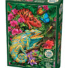 Who has Culture Club running through their brain right now? Anyone? Karma Chamelon is exploding with bright colours and personality. Chamelons are known for being camouflaged, so this puzzle wouldn’t be perfect without a little hidden reptile in the scene. Did you spot him? These three have made friends with the butterflies, but regular ol’ flies aren’t so lucky as that long tongue whips out to have a tasty treat on this beautiful afternoon in the jungle. A thrilling puzzle from Lori Anzalone.
