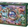 For our ocean lovers, we have Lighthouses, a collage of many beautiful beacons of light. The lighthouses are not just in the portals, but throughout the 1000 piece scenic puzzle with a background full of all things nautical and ocean worthy like sailboats, dophins, seagulls, and maybe even treasure – if you count the pearl in the oyster!