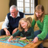 Family Pieces 350 puzzles include three different piece sizes so puzzlers of all skill levels can collaborate. The large pieces are on one end of the puzzle, the medium in the middle, and the small pieces on the other end. While these puzzles are designed for families, don’t let that stop you from enjoying it on your own! It’s also a great option for newer puzzlers who want to step up from a 275 piece puzzle, but not ready to jump into a 500 or 1000 piece. As well, skilled puzzlers enjoy this piece count when they need a little “snack” break.