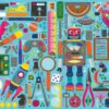 Do you have a Nerdy Junk Drawer? There are often lots of goodies to be discovered including a spaceship, ray gun, dinosaur, and a key that unlocks … What could it possibly unlock? Something magical, we’re sure of it! And we bet the information is stored on the floppy disk. Get your abacus out and start tallying up all the cool things you’ll find in this delightful puzzle of discoveries.