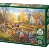 Experience the joys of country living with New Beginning, a 1000pPiece puzzle. This beautiful puzzle features two horses hard at work, surrounded by golden autumn trees and a bustling family and their faithful dog. Let the peaceful scenery transport you to a simpler time.