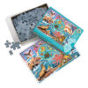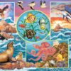 It’s a playful time with Ocean Magic! A sea full of creature that the whole family will enjoy discovering. Orcas jumping out of the water, pelicans and eagles soaring above, a swordfish gallantly above the water with a magnificent sunset, octopus underwater alongside friendly fish, sea otters, ducks and more. This Family Pieces 350 mini-collage puzzle is as entertaining as the deep blue ocean.