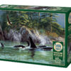 The pod of Orcas travel through the glistening green sea as an eagle follows closely behind. Take an adventure with Cobble Hill’s 1000 piece random cut puzzle that includes a reference poster.