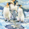 As the Penguin Family huddle together preparing to make the trek across the snowy land, baby penguin opens his mouth to catch the falling snow.