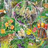 Ocelot of animals in Rainforest Magic! We’re kidding – that’s a rainforest joke, but seriously, there are a lot of wild animals to discover in Rainforest Magic Family Pieces 350 puzzle by Rosiland Solomon. Some of them may be camouflaged in the green fauna, but if you look closely in the square collage, there is a bird perfectly blended with the flowers. There are parrots, various monkeys, insects, amphibians, birds and mroe in this adventurous wildlife puzzle!