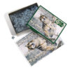 The wolves takes a Second Glance at their keen senses pick up on a creature scurrying in the snow covered forest. A 1000 piece wildlife puzzle by artist Al Agnew.