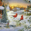The evening glow is settling over the quaint little town, and the Sunset Cardinals are in a flurry of excitement, gathering near the Timm home to discuss the curious open mailbox! No need to fret—Sam is on his way back, bringing the kids home from their horse-drawn carriage ride. With the crisp cold keeping the snow firmly in place, there’s no chance of any melting, so the package is safe and sound. The pond nearby is almost frozen over, reflecting the warm light from the charming church, completing this picturesque winter scene. It’s the perfect moment to slow down, relax, and piece together this serene, snowy evening.