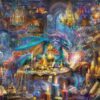 The Library Keeper is a magical fantasy of wizardly concoctions. A dragon nestled on a couch appears seemingly harmless until it finishes its incantation from the spell book, which begins casting rainbow coloured light to fill the room. Did the dragon act because he caught warning of something when peering through his telescope pointed outside the window? Even with all the candles and candelabras lit bright, there isn’t enough information to shed light on this mystery!