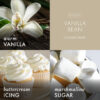Our Vanilla Bean candle is a must-have if you’re a big fan of vanilla. We’ve gone all in with this aromatic profile. ensuring that our fragrant blend truly captures the powerful appeal of the vanilla bean. These Vanilla Bean candles feature a prominent warm melted vanilla top note. buttercream icing mid-note and base notes that include light marshmallow and milky vanilla cream. Fill your home with the smooth. sweet scent you love.