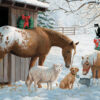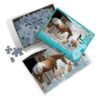 Winter Barnyard is a lovely Family Piece 350 puzzle with farm animal friends. The snow covered barnyard is the meeting place for horse, sheep, cat and dog.