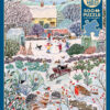 Come play with a sense of wonder in the charming illustration of Lucy Grossmith’s Winter Holidays 500 piece puzzle. Step into a snowy wonderland where kids joyfully decorate their snowman, while dogs and rabbits frolic across the snow. Hedgehogs curiously explore empty planters, under the watchful eye of a cat keeping tabs on the singing birds. Painted with soft pastels, this scene gently screams joy and innocence, capturing the heart of the artists love for the countryside.