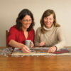 It’s Winter on the Farm and the red barn is once again the hub for horses to meet. The golden retriever dog wants in on the action as he looks to make his way around the vintage tractor to hop the fence, while it looks like the birds are heading south for the winter – except that one lonely pheasant who may stay for Christmas..dinner. This 1000 piece rural farm scene includes a challenging golden sky and snow covered ground.