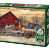 It’s Winter on the Farm and the red barn is once again the hub for horses to meet. The golden retriever dog wants in on the action as he looks to make his way around the vintage tractor to hop the fence, while it looks like the birds are heading south for the winter – except that one lonely pheasant who may stay for Christmas..dinner. This 1000 piece rural farm scene includes a challenging golden sky and snow covered ground.