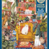Enter a heartwarming scene in this puzzle by Sumit Gill, where beautiful cats revel in their lush, plant-filled home. They’ve claimed every cozy spot—the poof, chair, bookshelf, planters, stool, and every little crevice they fit into. But fret not, ‘You Can Sit on the Floor’—a furry friend is sure to find your lap! Perhaps there’s a spot on the blue rug just for you. One curious cat gazes out the window at a tree house across the way. This anxiety-reducing puzzle is perfect for plant and cat lovers alike.